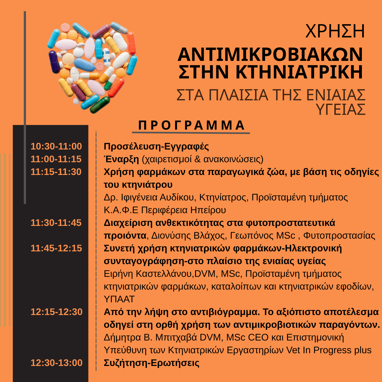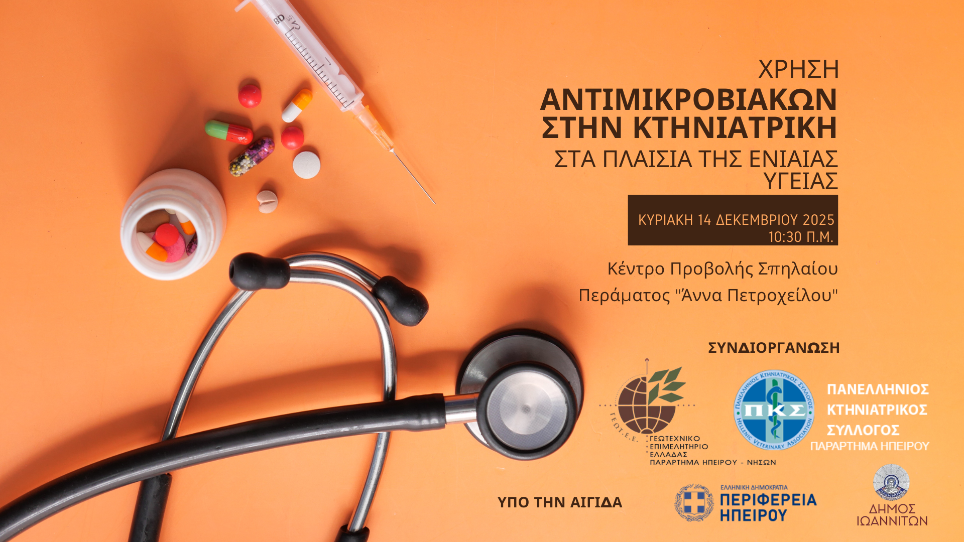Το Παράρτημα Ηπείρου – Νήσων του Γεωτεχνικού Επιμελητηρίου Ελλάδας και το Παράρτημα Ηπείρου του Πανελλήνιου Κτηνιατρικού Συλλόγου, διοργανώνουν ημερίδα με τίτλο: «Χρήση αντιμικροβιακών στην Κτηνιατρική στα πλαίσια της ενιαίας υγείας».